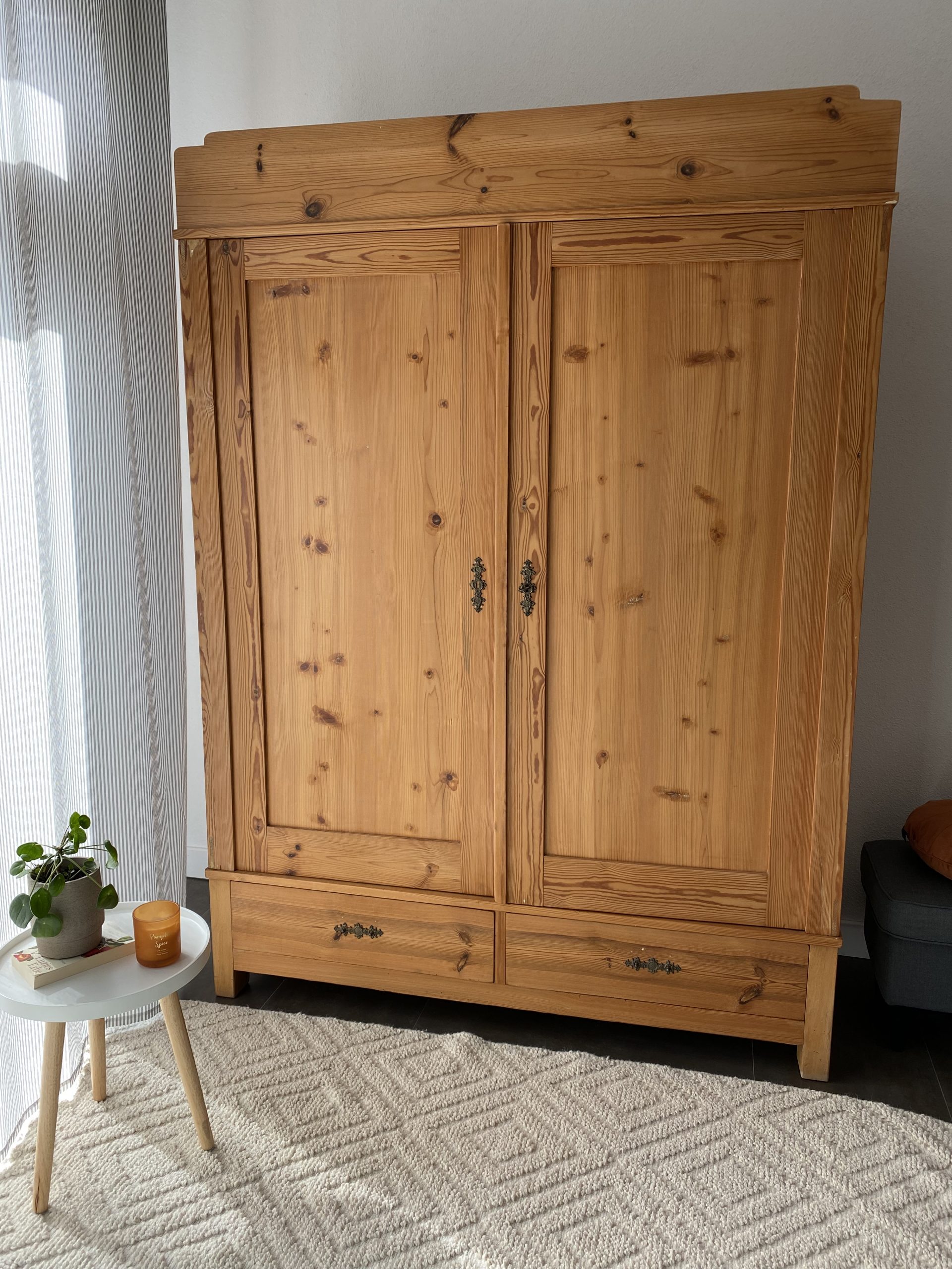 Der etwa 100 Jahre alte Weichholzschrank ist in seine Bestandteile zerlegbar und vollständig restauriert.